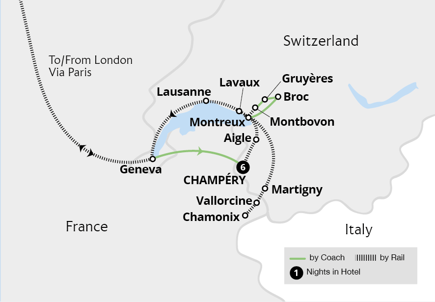 Explore picture-book mountain towns bursting with traditional Swiss and French charm from a base in an idyllic village of Champéry, located in the Chablais Alps overlooking the Dents du Midi. Climb past snow-capped peaks on the elegant Mont Blanc Express to the historic resort of Chamonix, nestled beneath western Europe's highest mountain.