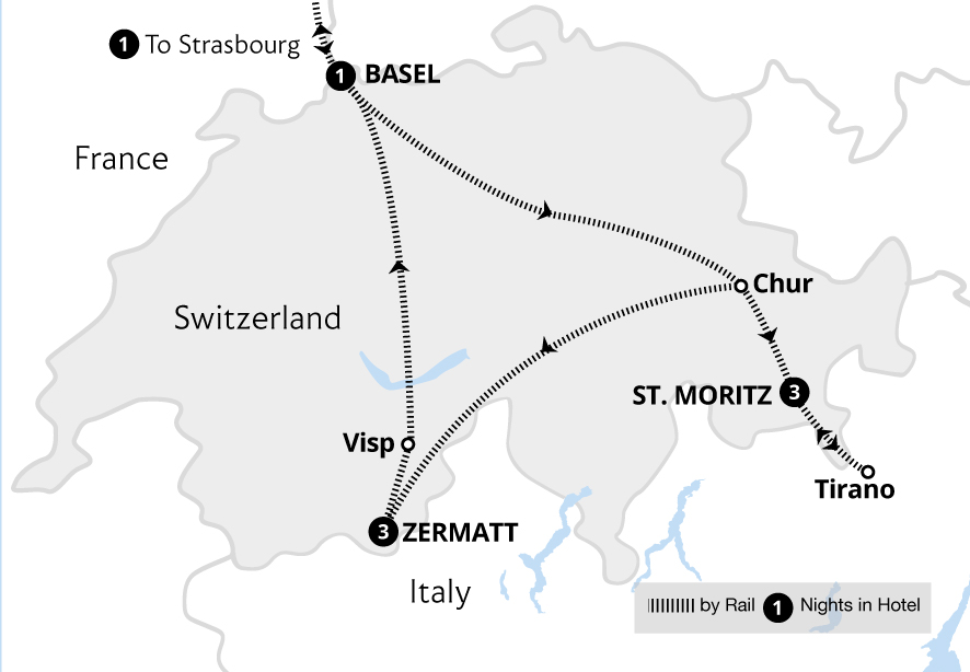 • Spend 8 nights in 4 star hotels, based in the traditional alpine towns of Chur and Brig