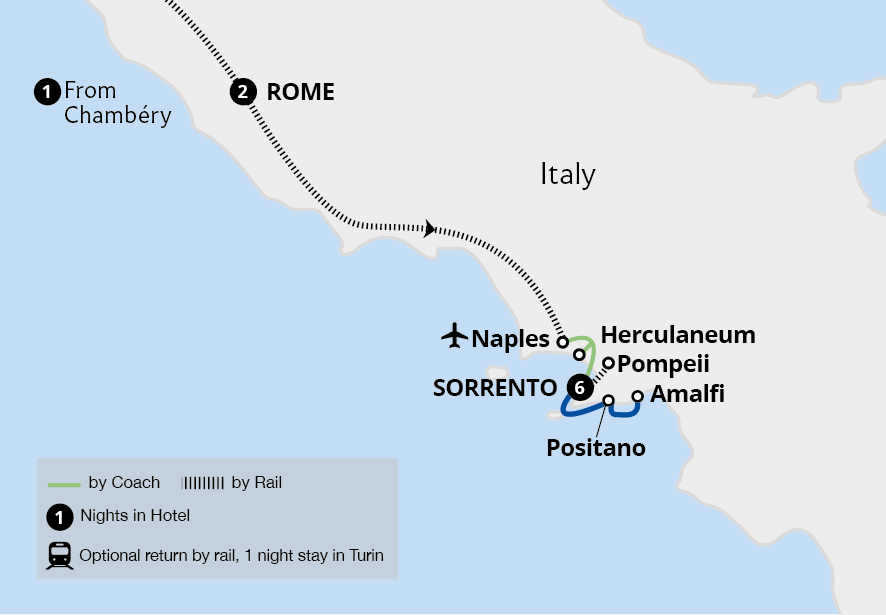 This culture rich holiday begins with two nights in the 'Eternal City' of Rome, before we continue to pretty Sorrento with its colourful harbour overlooking the stunning Bay of Naples, gateway to Capri and the Amalfi Coast.