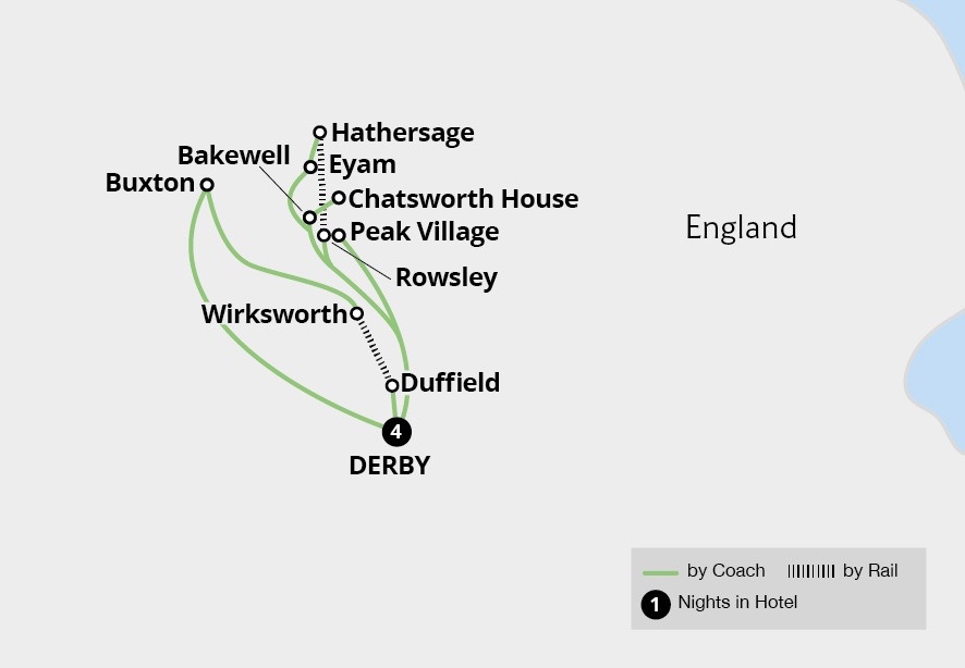 Uncover some of rural England's most picturesque landscapes on a scenic journey through Derbyshire and the Peak District. Visit the elegant spa town of Buxton with a local guide and learn about its Roman origins. Explore Bakewell's historic buildings and perhaps sample one of its famous desserts, before visiting the magnificent Chatsworth House...